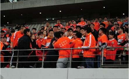 中场休息时,有网友爆料称,有几名鲁能球迷同现场的安保发生了冲突。据这位网友的爆料,冲突的起因是韩国安保要求没收鲁能球迷协会会旗和国旗,而鲁能球迷予以了拒绝。在双方理论的过程中,有一名鲁能球迷被韩国安保一把推倒在地。