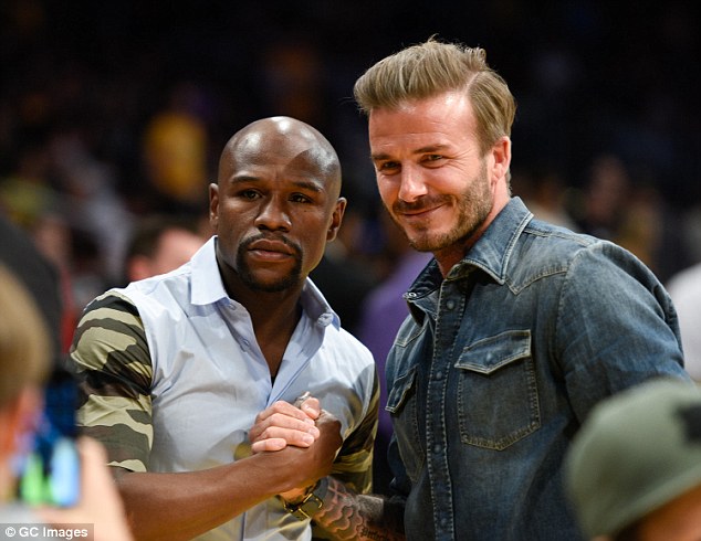 4月4日,湖人主场迎战76人,这场比赛吸引了众多名流,炫富大王梅威瑟也到场,并与贝克汉姆父子合影留念。