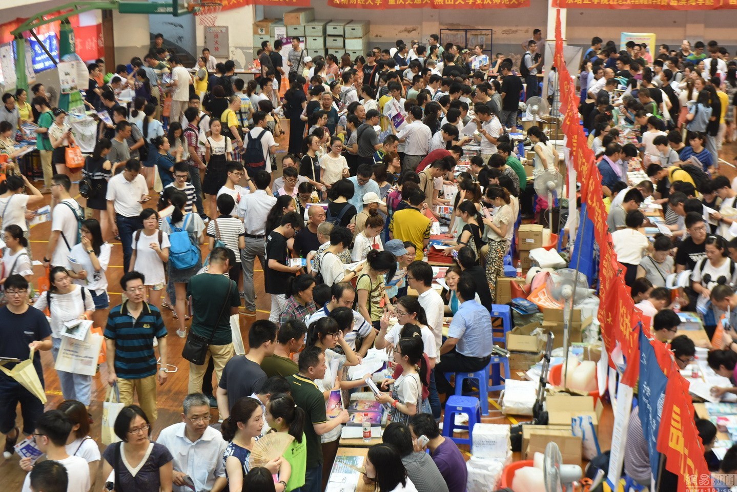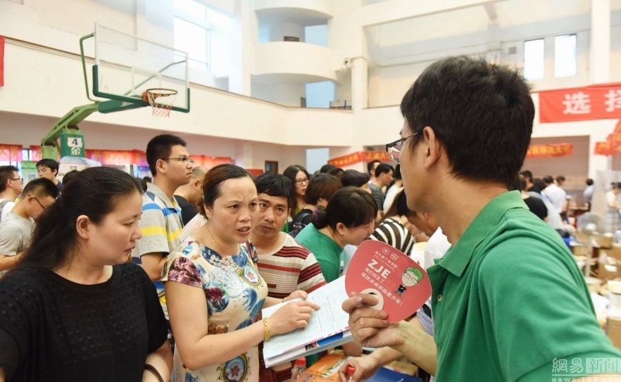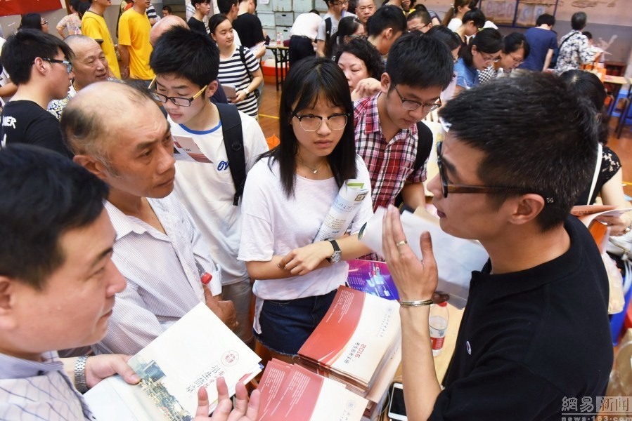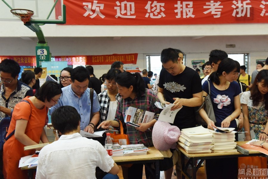 2016年6月23日,2016年浙江高校招生公益咨询会在杭州举行,由于浙江高考分数在一天前刚刚揭晓,使得本届“高招会”人气十分火爆,数万学生和家长“挤爆”现场。图为杭州高校招生咨询会现场。东方IC (来源媒体:网易综合 责任编辑:王絮颖_NN5348)